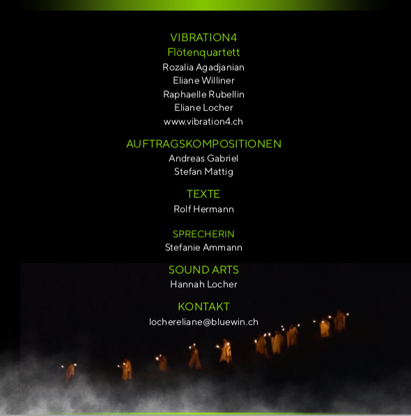 DER LETSCHT GRAATZUG takes the audience into the mystical, surreal atmosphere of legends and myths, drawing on folk music idioms. Mysterious sounds from the mystical world of glaciers and mountains, new and traditional music, and poetic texts merge in this project to create a total work of art that radiates hope despite ecological catastrophe and increasing anxiety. This dual perspective – the destruction of nature and the symbolic liberation of souls – runs through the entire work and expresses this ambivalence in an artistic way.